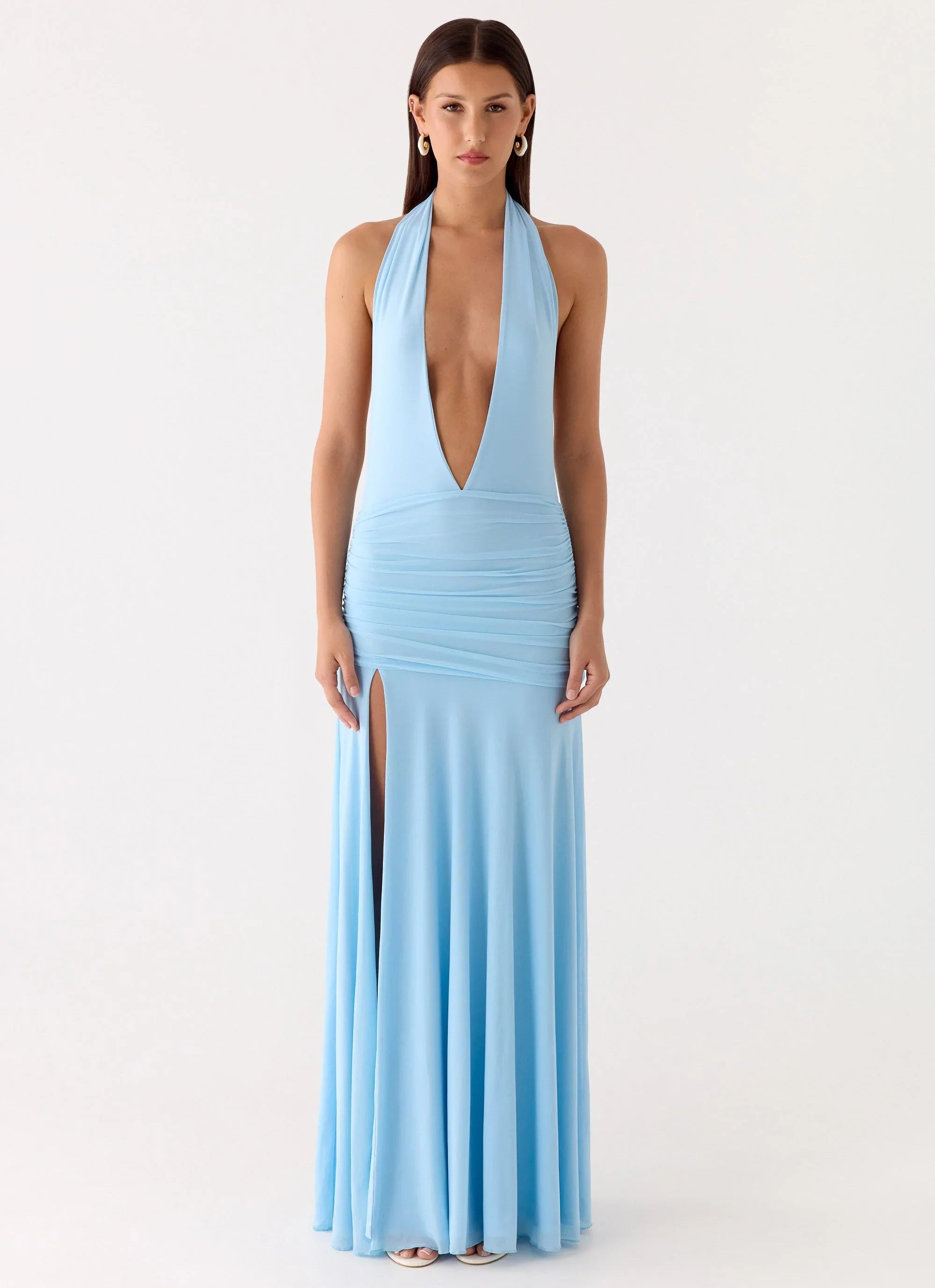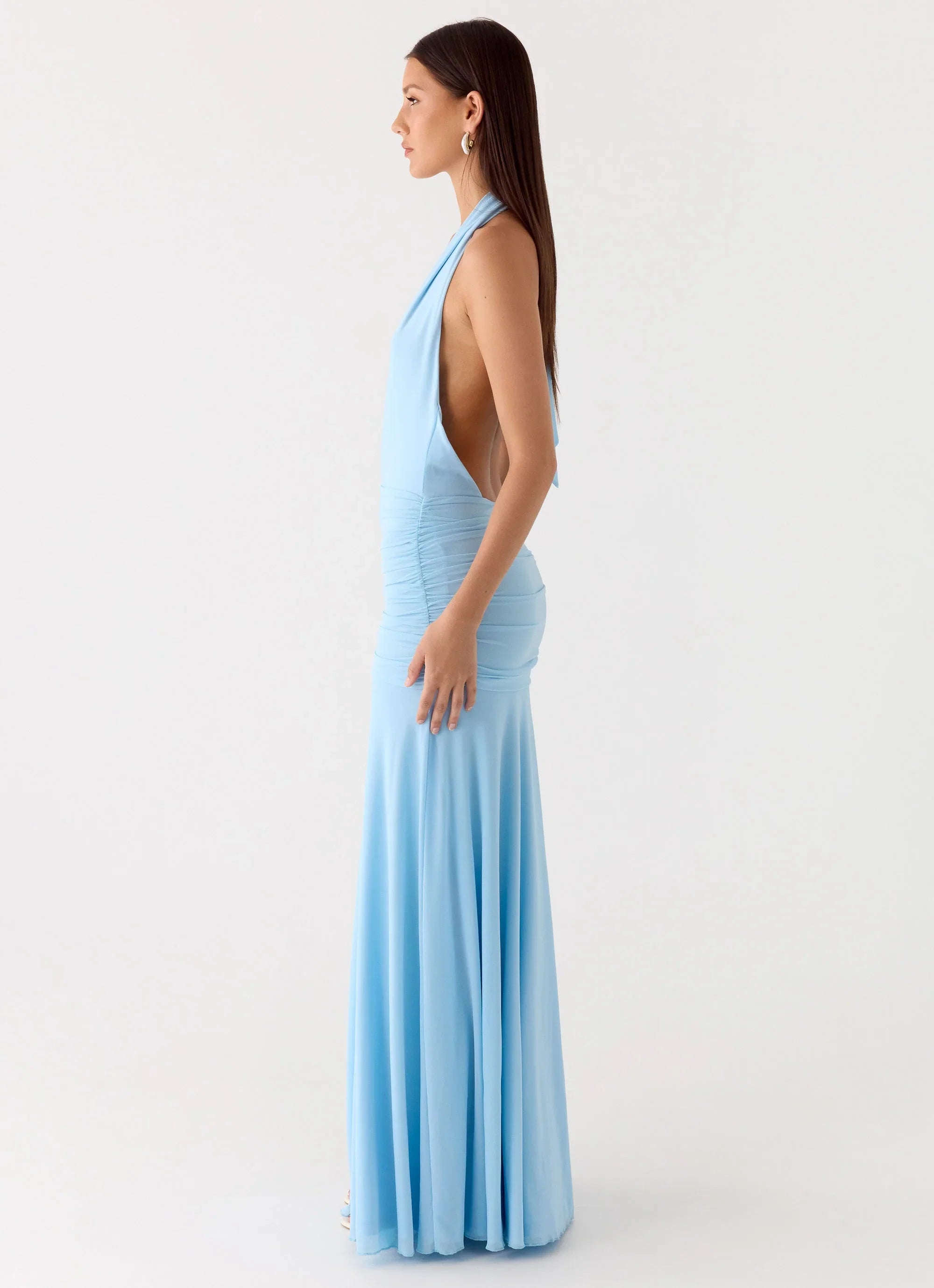 El vestido maxi Sorrento Sunsets fluye con una elegancia lista para el atardecer. Con un escote de pico bajo, cintura fruncida y una abertura en el dobladillo frontal lateral, este vestido de malla elástica completamente forrado está acabado con un tirante grueso que se ata al cuello y una espalda baja, creando una silueta favorecedora perfecta para las noches en la playa o los cócteles en la azotea.