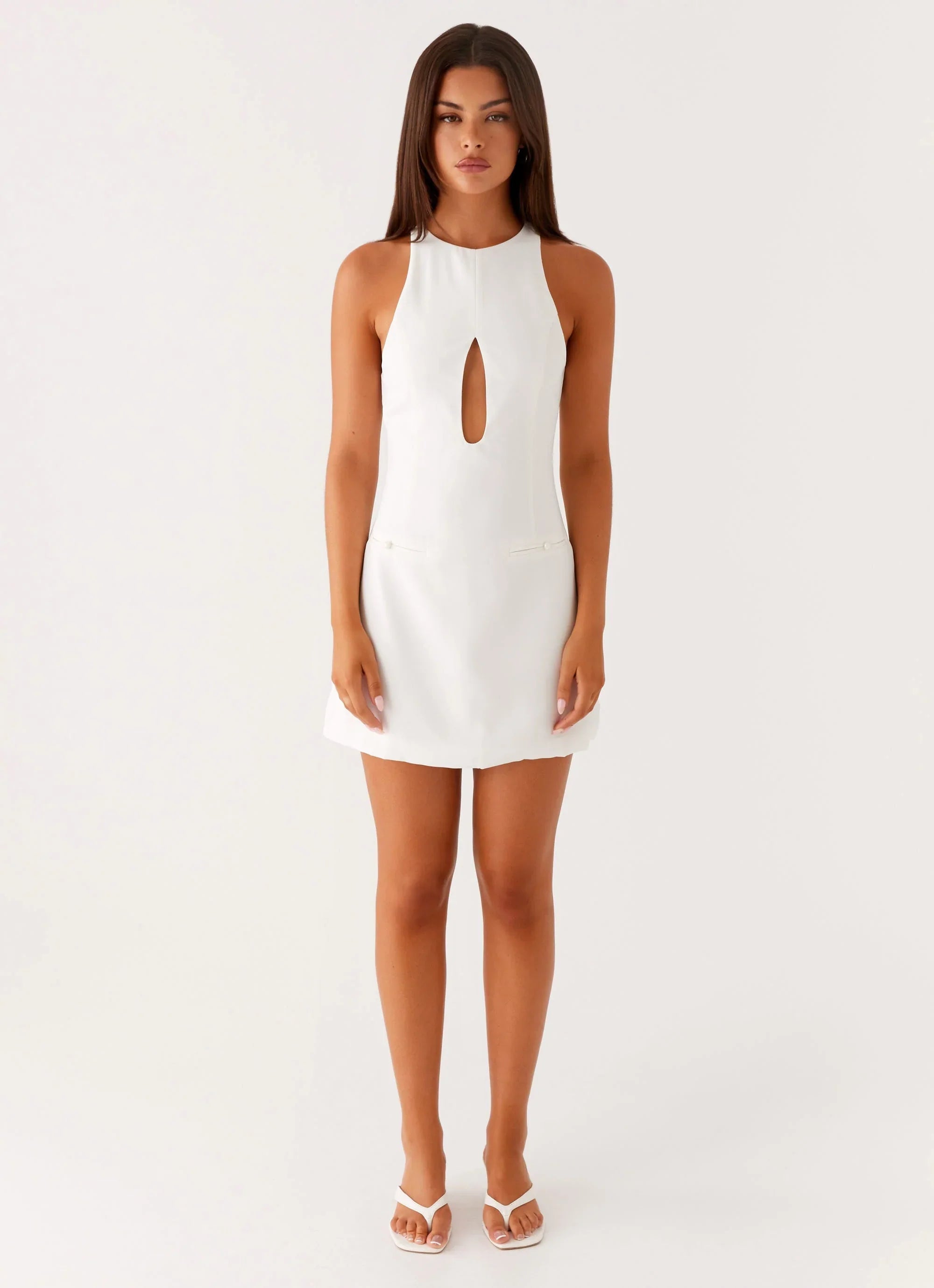Elegante y con estilo, el minivestido Stacy combina un largo mini con un escote redondo y un atrevido corte delantero. Los detalles de los bolsillos ribeteados dobles y un elegante cierre trasero añaden estructura a esta prenda forrada en su totalidad.