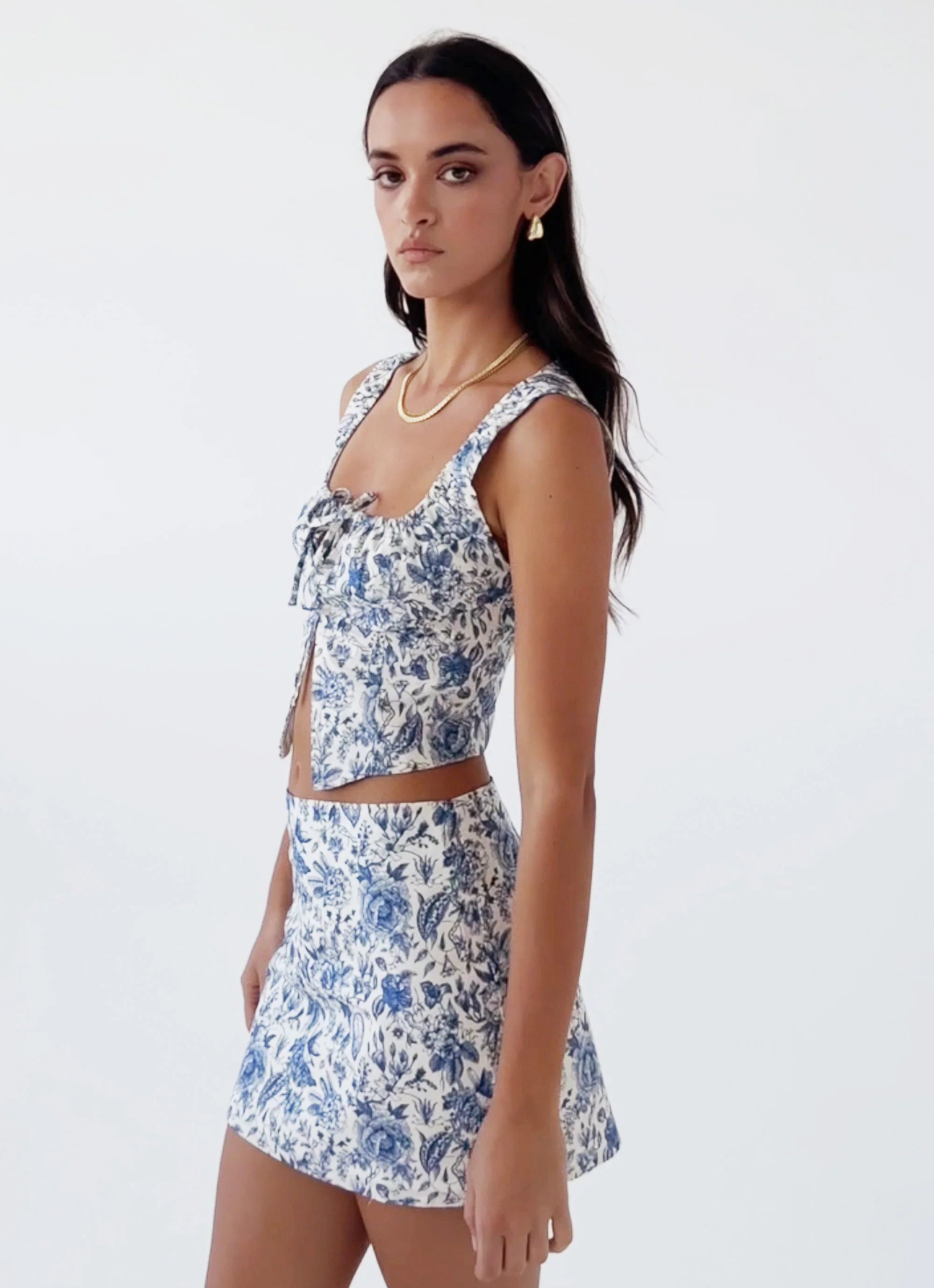 Añade estructura a tu look con este top corsé de ensueño Take Me Away. Con un impresionante estampado floral azul y mini mangas abullonadas, simplemente no podemos tener suficiente. Combínalo con la minifalda a juego Take Me Away, tacones y un mini bolso para un look que hará girar cabezas sin importar la ocasión.