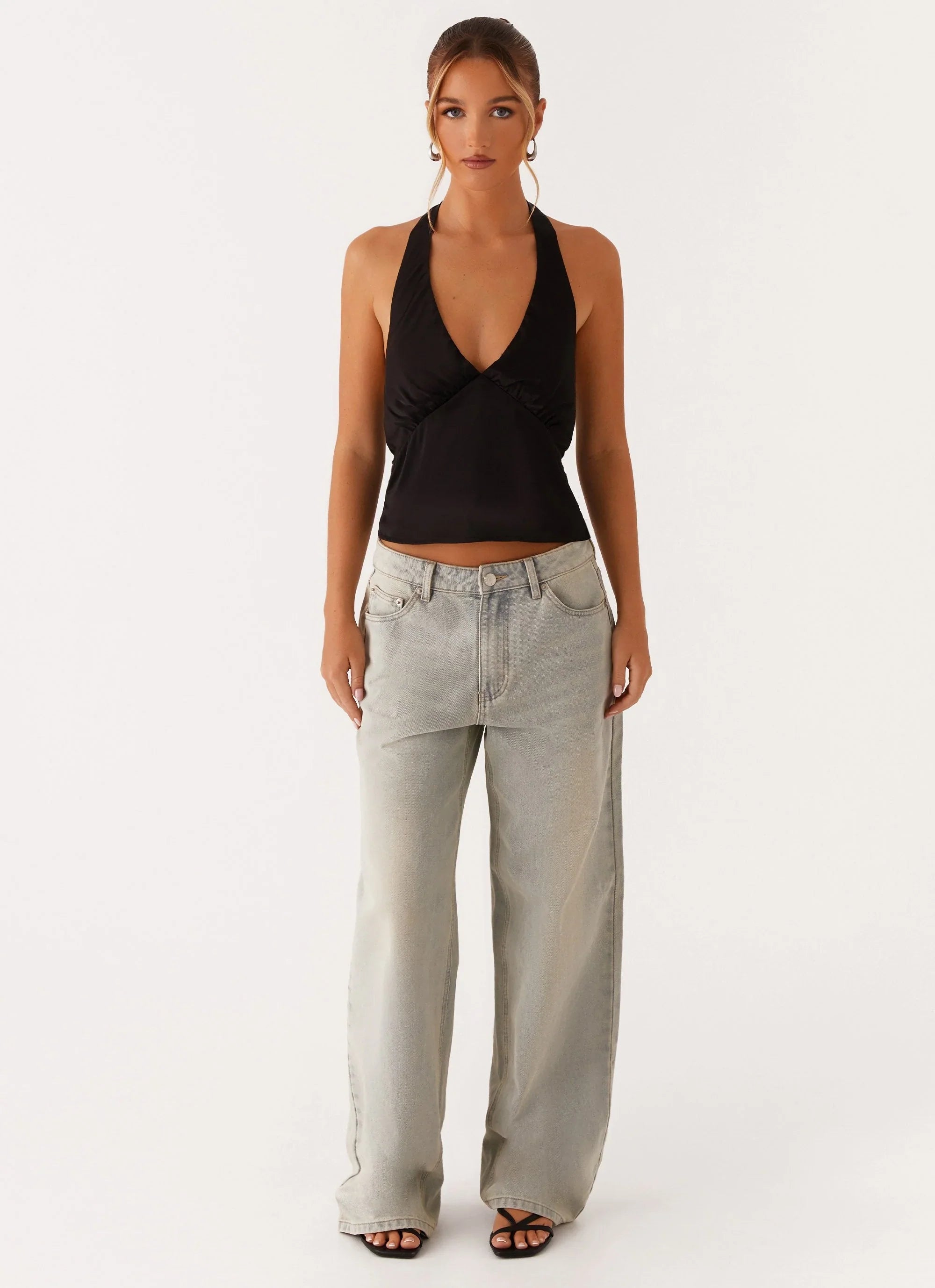 The Heavy Hearted Top features a deep V neckline and an open back for a bold, sultry look. It is self-lined for added comfort and a seamless fit. Perfect for pairing with high-waisted jeans or skirts for a chic evening ensemble.
