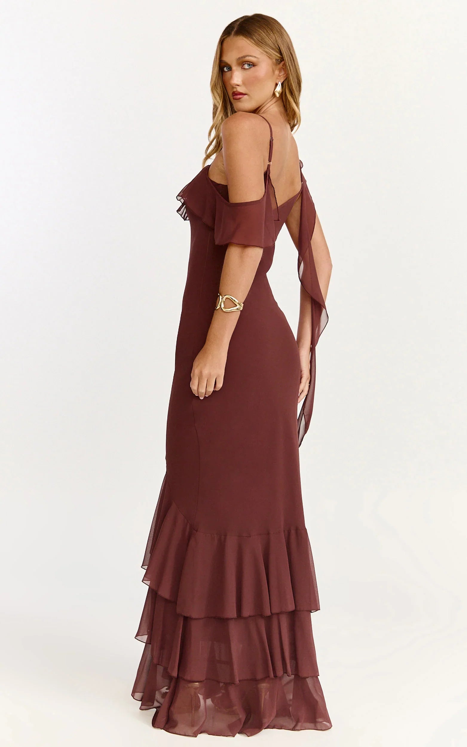 Riley Maxi Dress is here to boost your confidence and celebrate every curve, because getting dressed should feel as good as it looks. Perfect for date nights, weddings, and everything in between, this brown beauty pairs seamlessly with neutral heels and a sleek clutch, or dial up the vibe with luminous earrings and a bold lip. This is one of those dresses that makes getting ready feel easy.