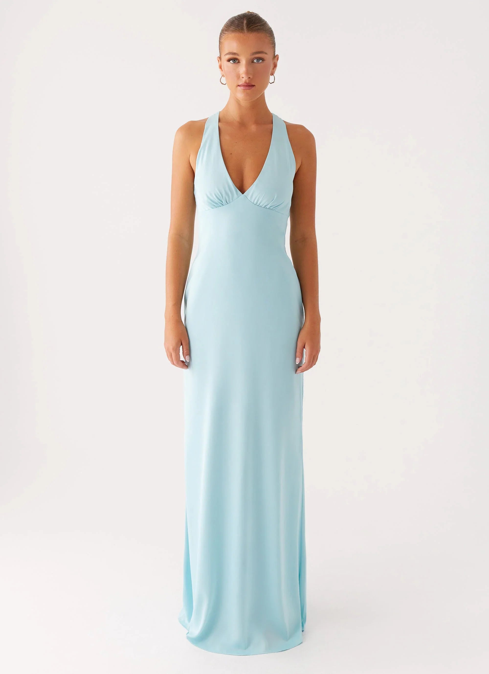 O vestido longo Desi Halterneck é elegante sem esforço com um toque de elegância sensual. Apresentando um decote em V profundo e detalhes franzidos sob o busto, ele abraça suas curvas e flui lindamente para um caimento perfeito.