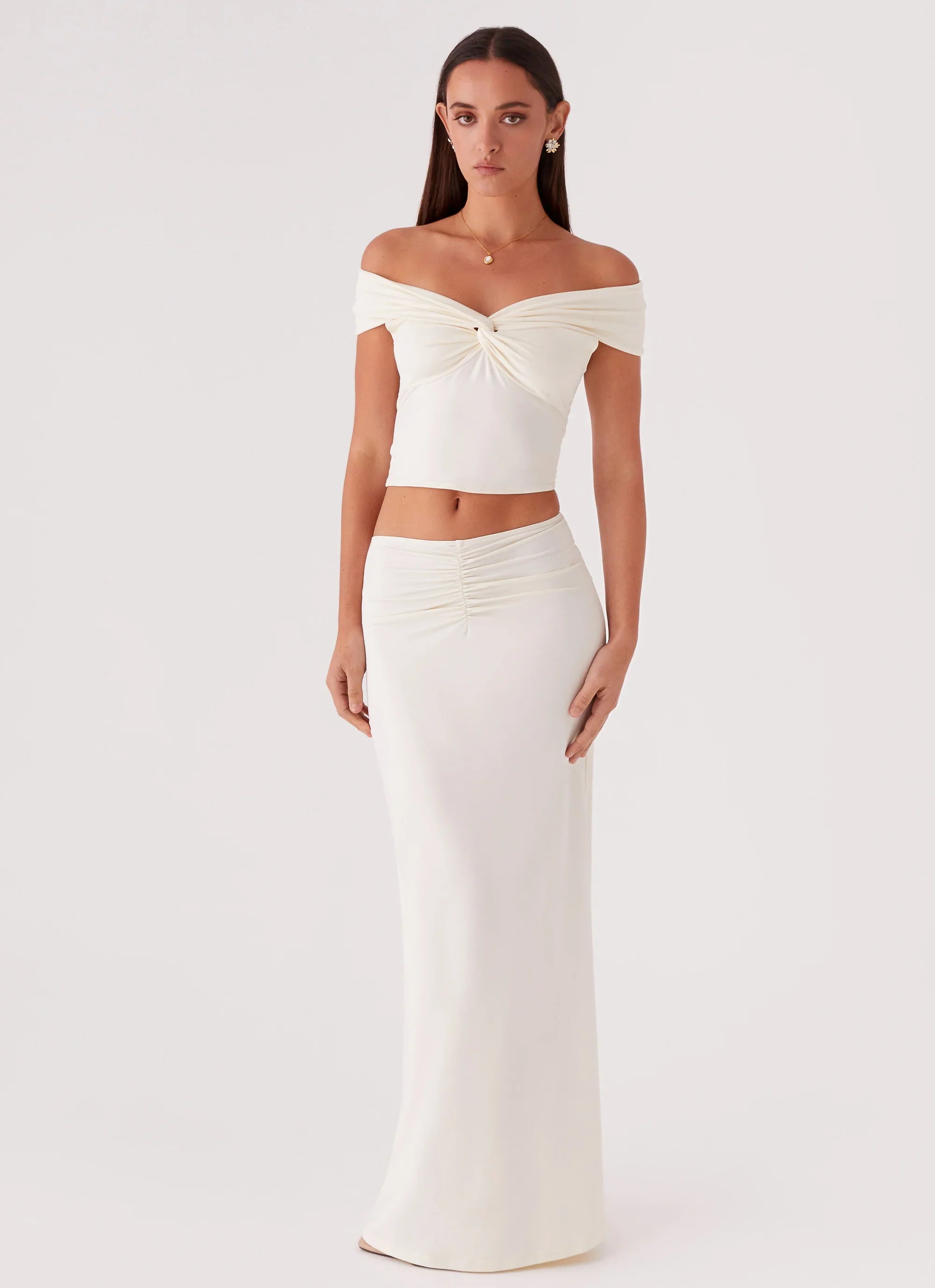 Destaque-se com o Top Trixie Twist-Off Shoulder. Apresentando um decote sedutor de ombro a ombro, este top exala sofisticação e charme sem esforço. O detalhe torcido no busto adiciona um toque de intriga e dimensão, garantindo que você se destaque da multidão com estilo.